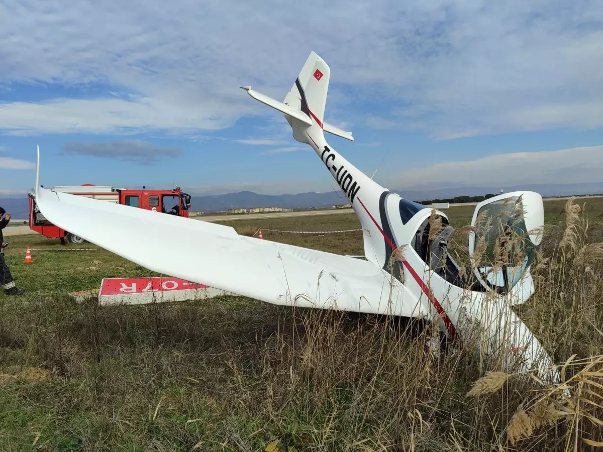 Bursa'da Yenişehir Havalimanı'nda taksi yapan bir eğitim uçağı pistten çıkarak toprak zemine saplandı. Kazada pilot hafif yaralandı.