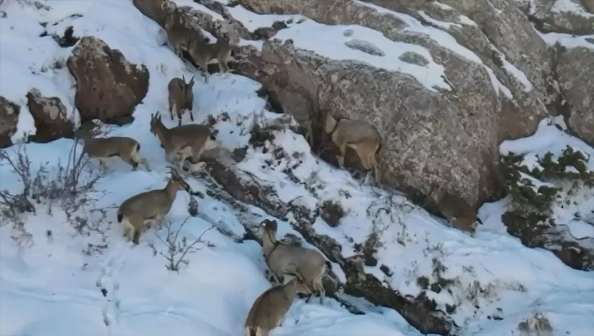 Yaban keçileri Sivas'ta sürü halinde görüntülendi, popülasyon artışı sevindirici.