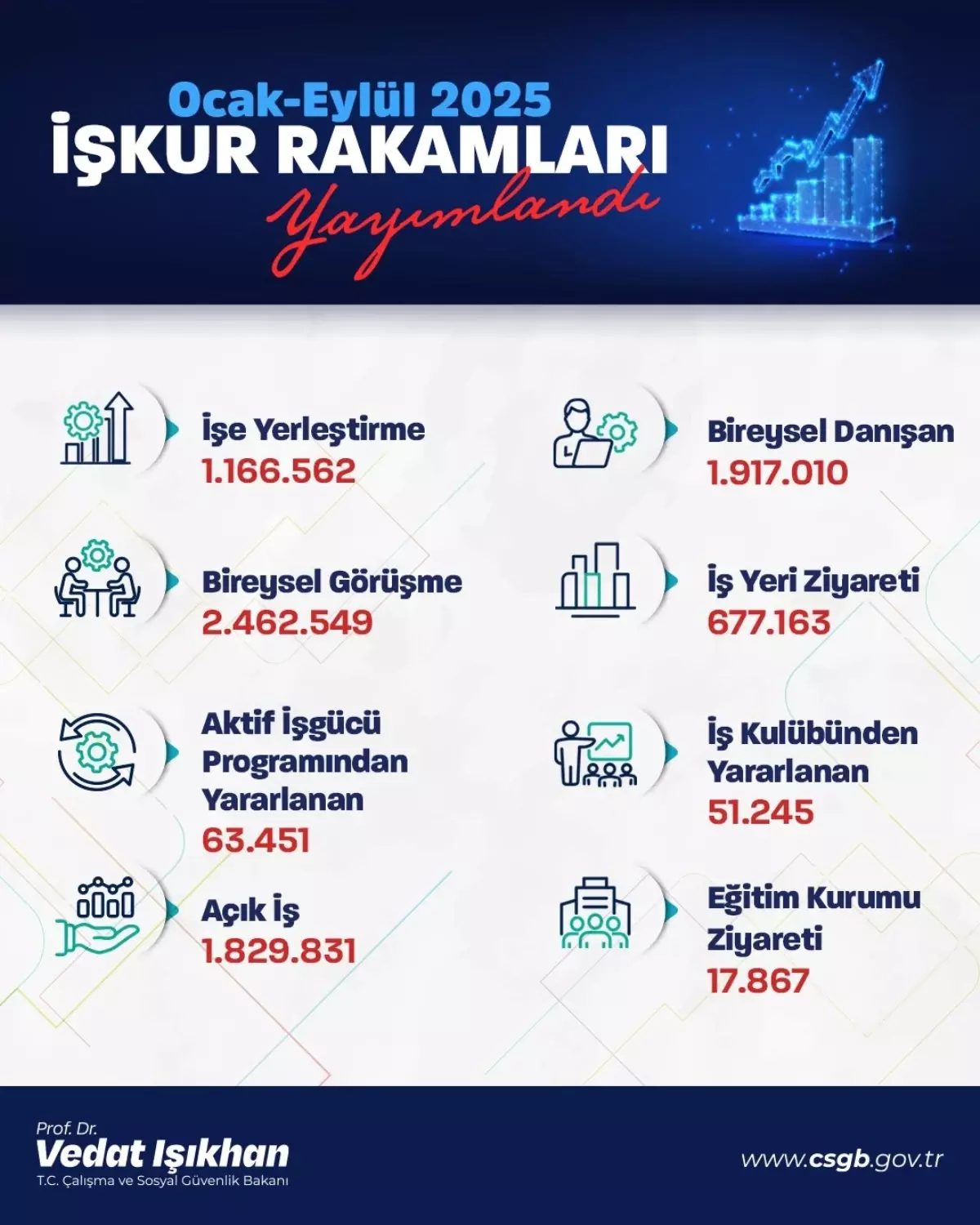 Bakan Işıkhan, İŞKUR aracılığıyla ocak-eylül arasında 1.166.562 işe yerleştirme yaptıklarını açıkladı.