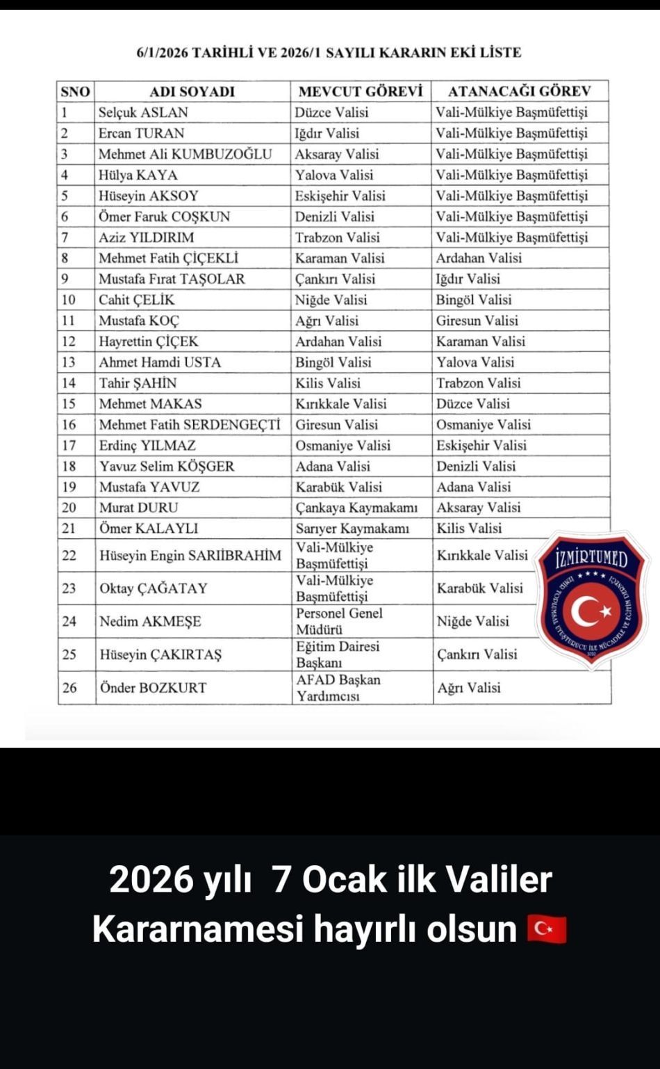 2026 YILI İLK VALİLER KARARNAMESİ AÇIKLANDI