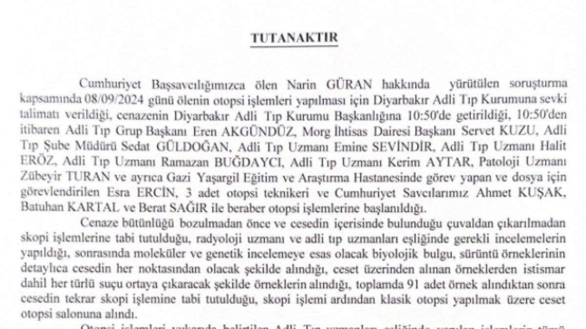 Narin Güran’ın otopsisinin ardından savcı tutanağı ortaya çıktı