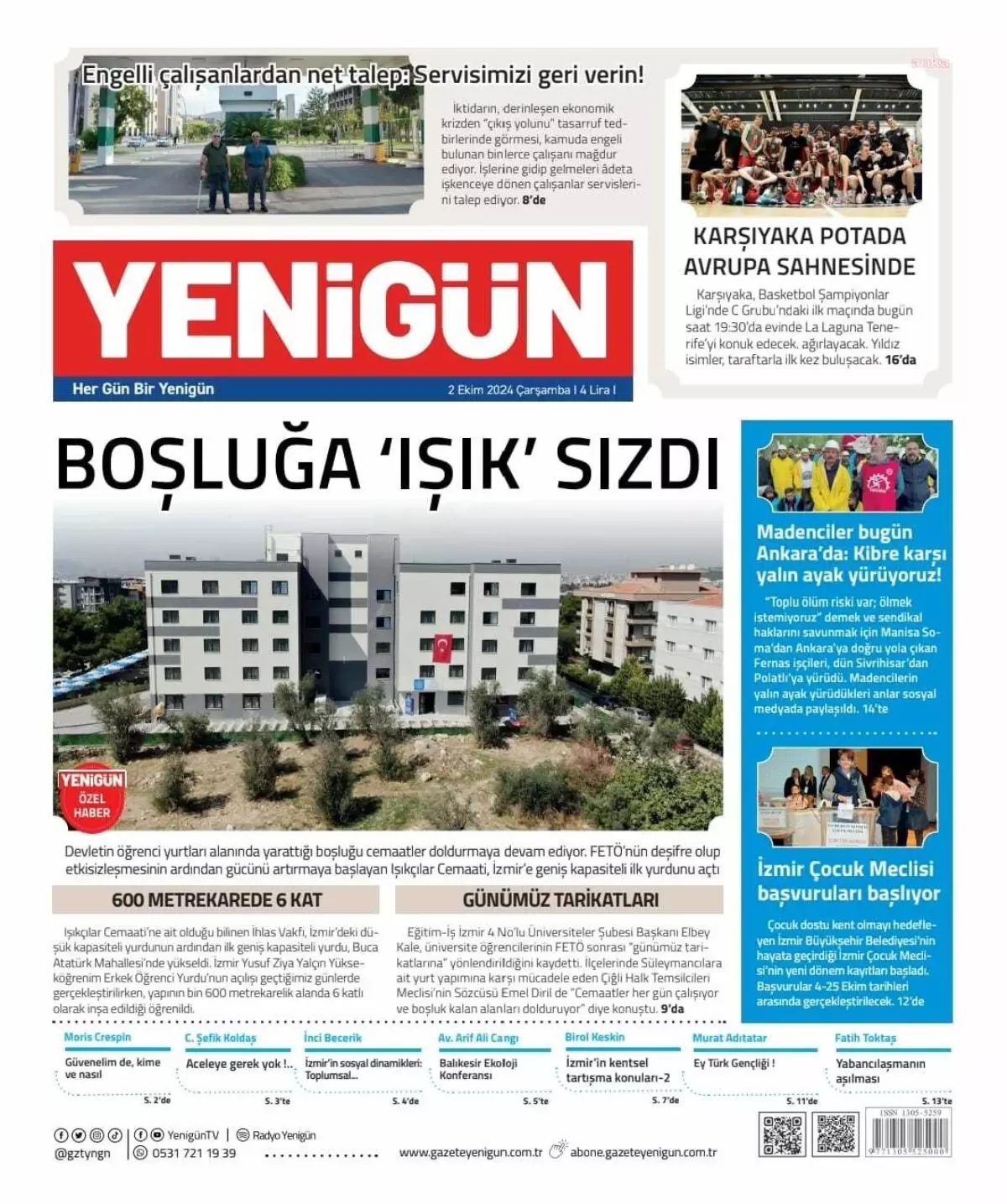 (İZMİR)- Türkiye Gazeteciler Sendikası(TGS) İzmir'de yayımlanan Yenigün gazetesinin "Boşluğa 'Işık' Sızdı" manşetinin yer aldığı bugünkü birinci sayfasının İhlas Matbaası tarafından…