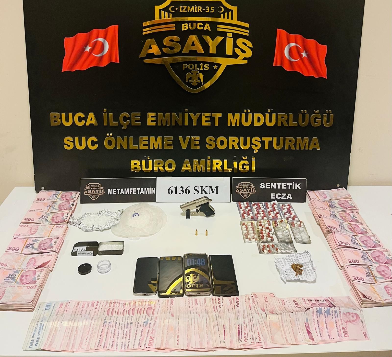 BUCA’DA UYUŞTURUCU TACİRLERİNE ŞAFAK DARBESİ: SİLAH VE MADDELERLE YAKALANDILAR!