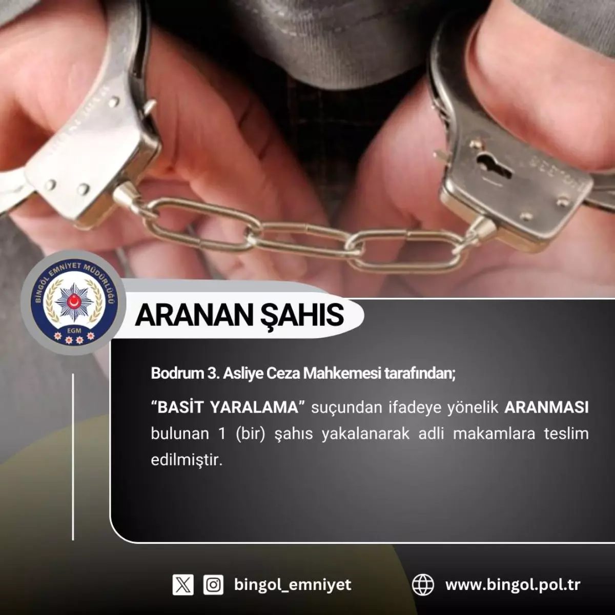 Bingöl'de yapılan polis uygulamalarında haklarında arama kararı bulunan 11 kişi yakalandı.
