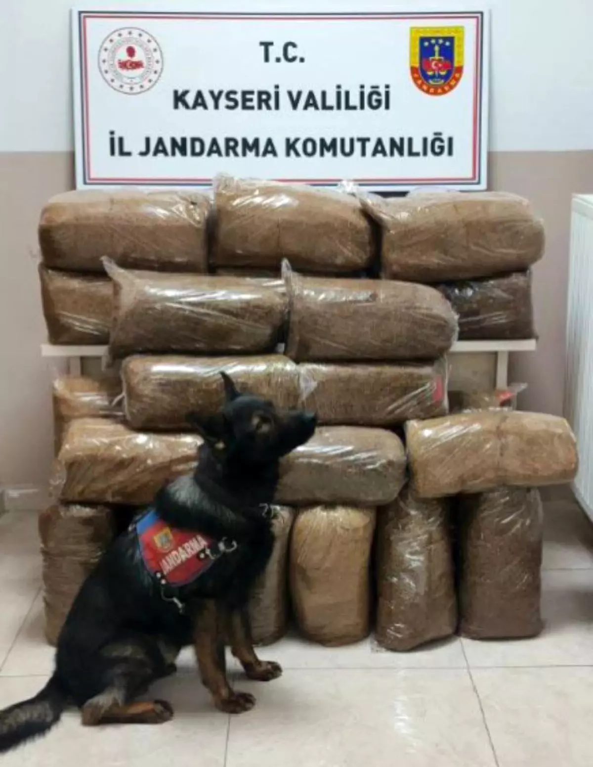 Kayseri'de jandarma, yolcu otobüsünde 228 kg bandrolsüz kıyılmış tütün buldu.