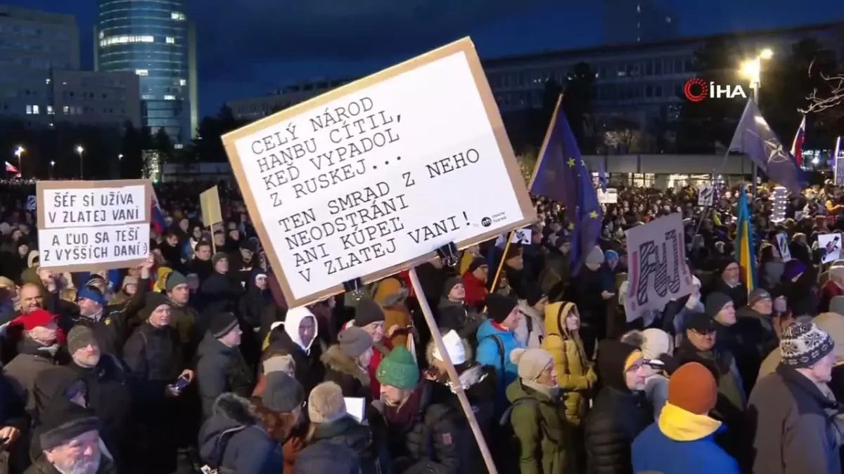 Bratislava'da binlerce kişi, Başbakan Fico'nun Rusya politikalarını protesto etti.