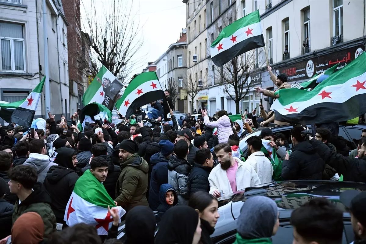 Brüksel'deki Suriyeliler, 61 yıllık Baas rejiminin çöküşünü bayraklarla kutladı.