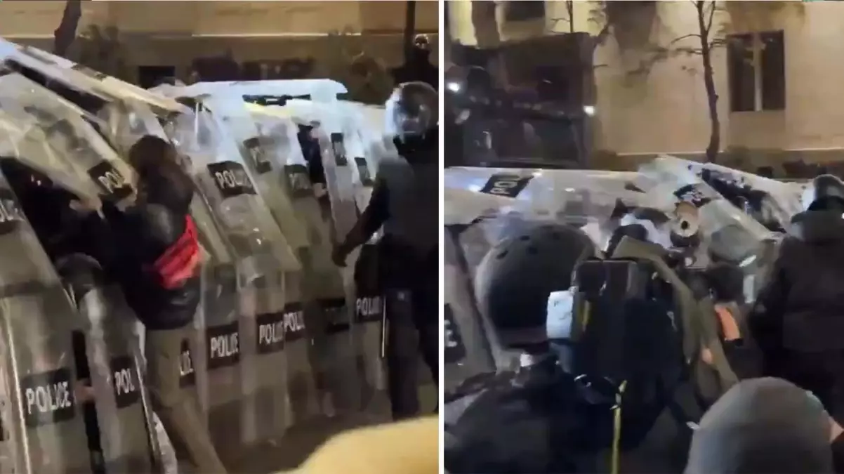 Gürcistan'da AB müzakerelerinin askıya alınması sonrası Tiflis'te yapılan protestolar polisle çatıştı.