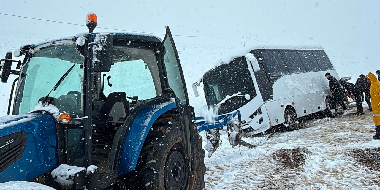 Karla Sıkışan Otobüs Kurtarıldı