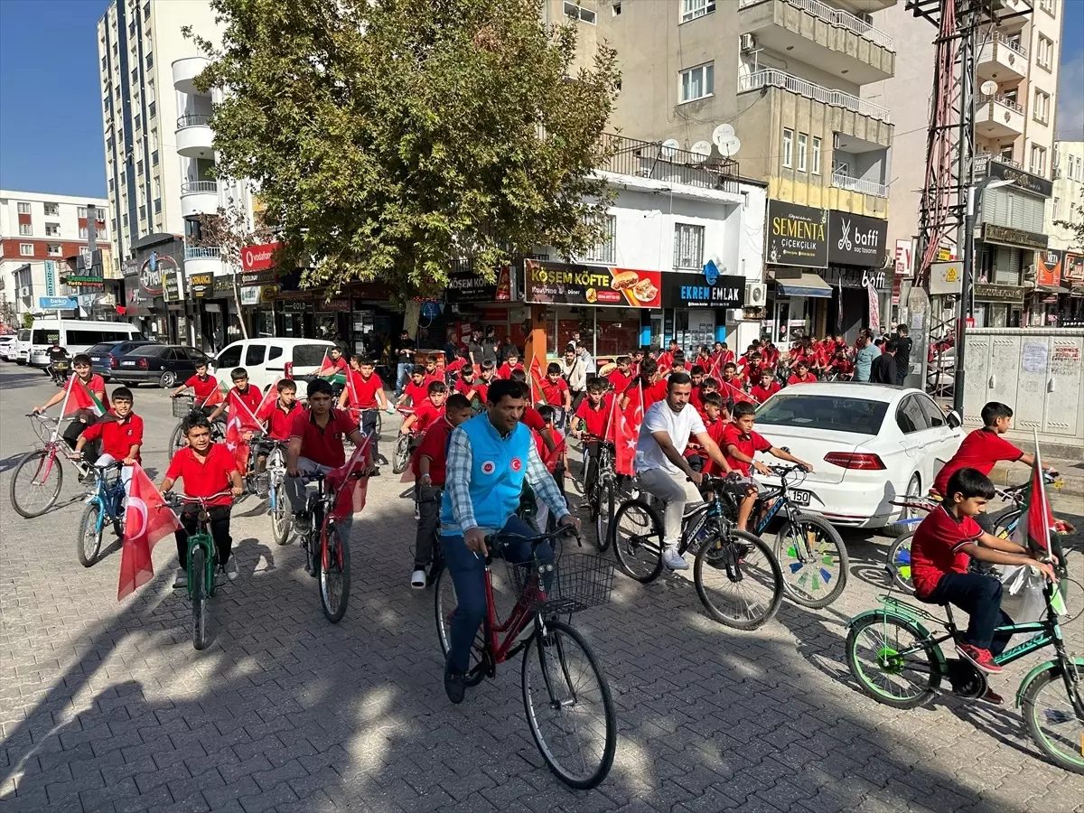 Kahta'da ortaokul öğrencileri, Gazze'ye destek için bisiklet turu düzenledi.