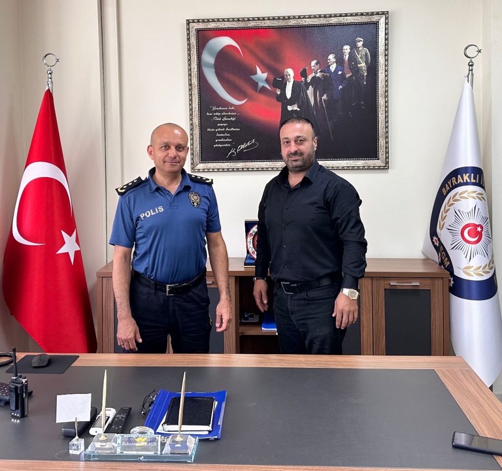 Genel Başkanımız Sayın Bedri Yalçın, bugün İzmir’in en yoğun ilçelerinden biri olan Bayraklı’da bulunan İlçe Emniyet Müdürü Sayın Bahadır Özdemir’i…