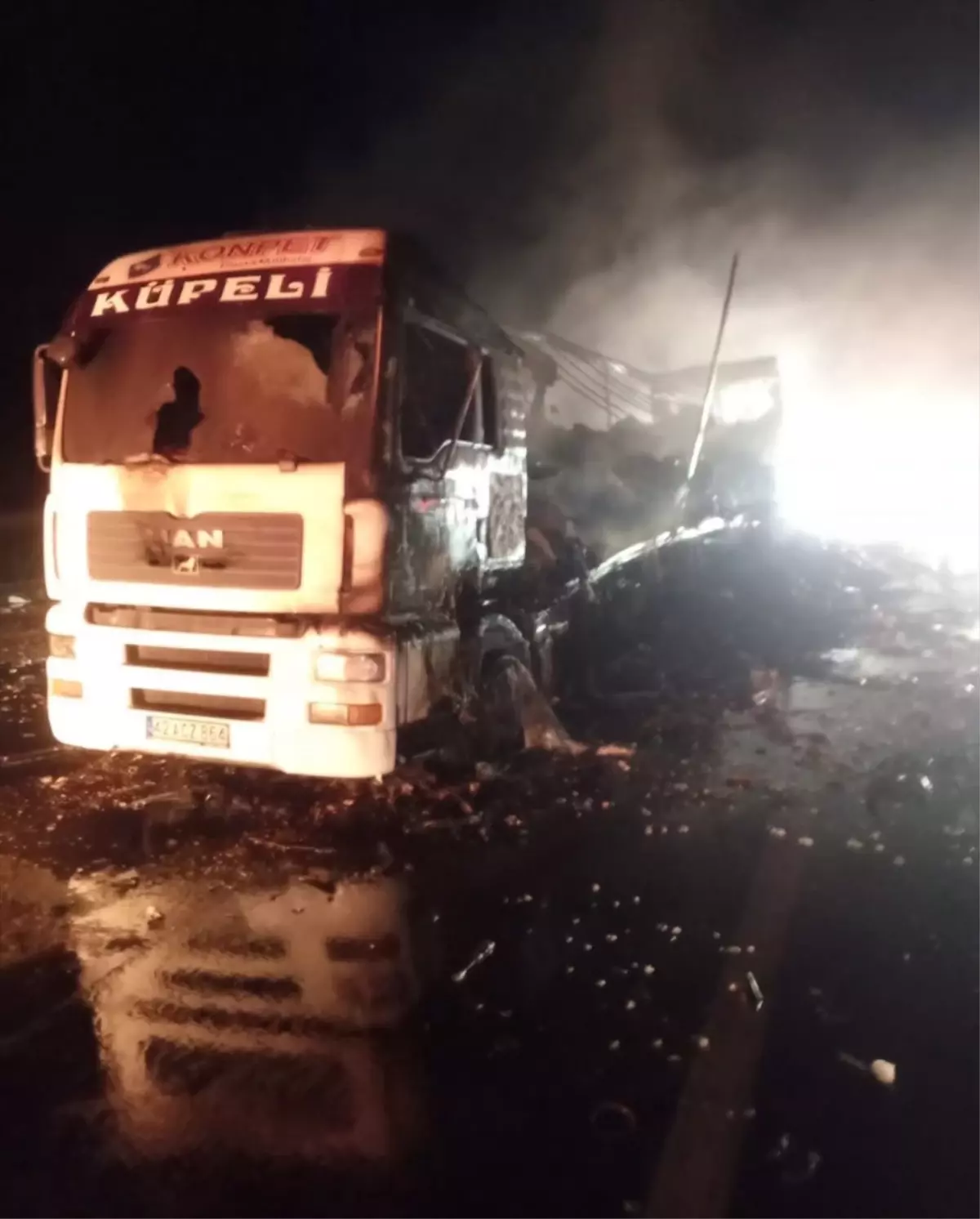 Sürücüsü ve plakası henüz bilinmeyen tırın dorsesi, Afyonkarahisar – Konya kara yolunun Eber köyü yakınlarında seyir halindeyken henüz belirlenemeyen nedenle alev aldı.