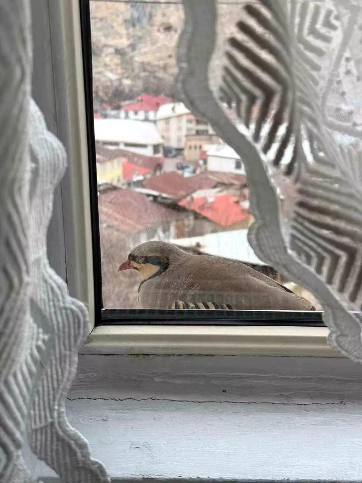 Tunceli’nin Çemişgezek ilçesinde, sabahın erken saatlerinde evinin perdesini açan aile, penceresinde kınalı keklik ile karşılaştı.