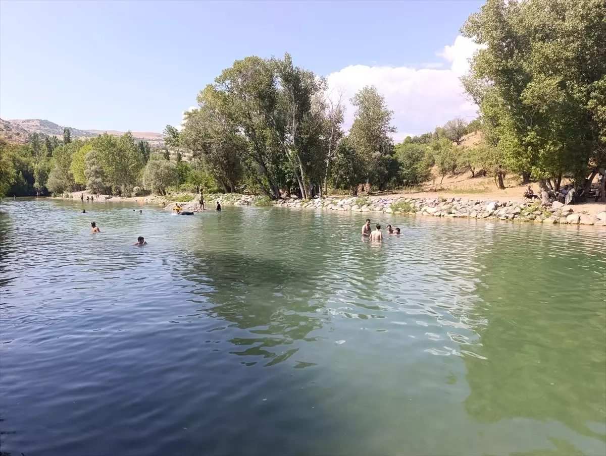 Tunceli’nin Çemişgezek ilçesinde sıcak havadan bunalan vatandaşlar, Tağar Çayı’nda yüzerek serinlemeye çalıştı.