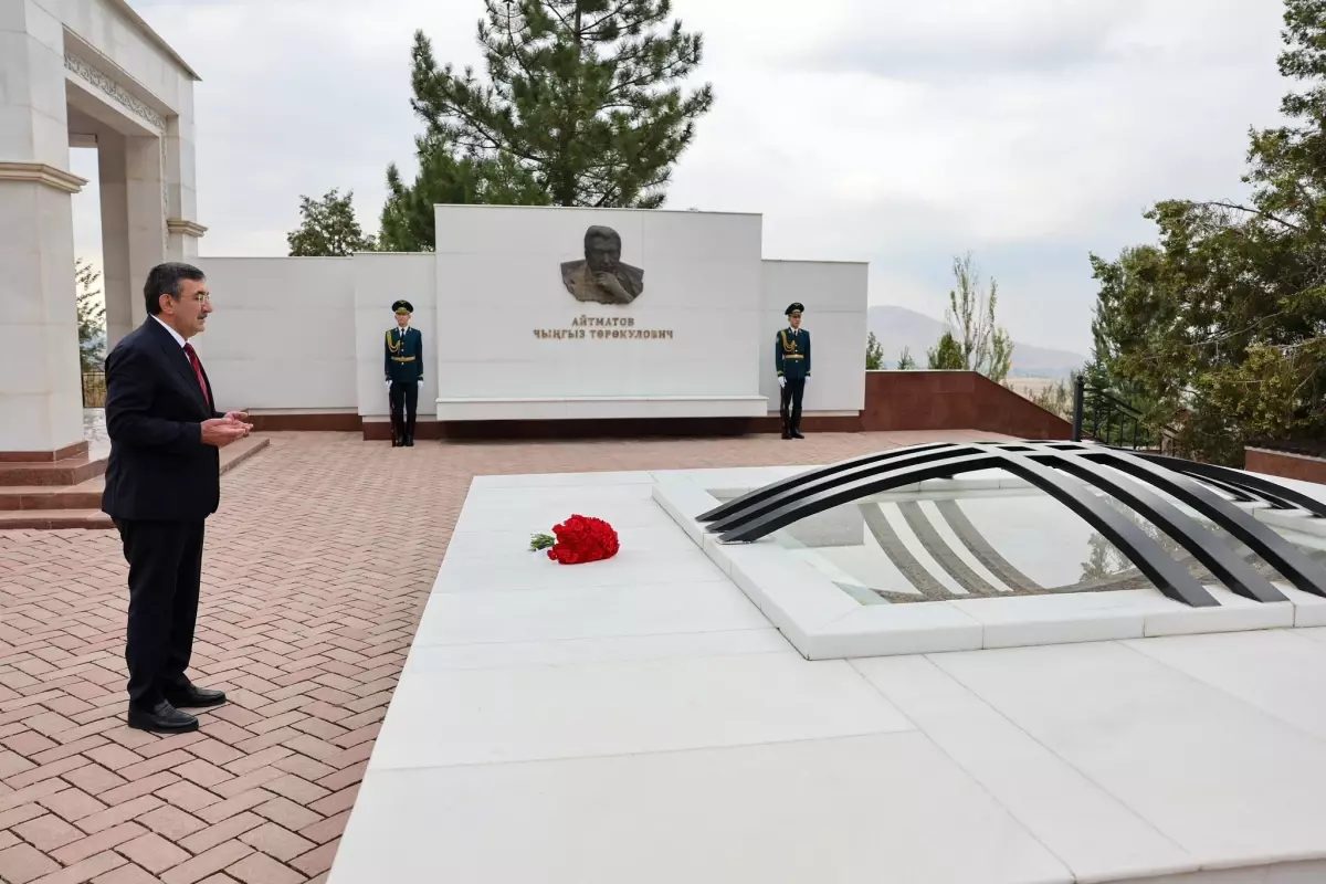 Cumhurbaşkanı Yardımcısı Cevdet Yılmaz, sosyal medya hesabından yaptığı paylaşımda, “KEK 12’nci Dönem Toplantısı’na katılmak üzere Ata yurdumuz Kırgızistan’dayız. Bişkek programımızın ilk durağında Kırgız halkının özgürlük, bağımsızlık ve kimlik mücadelesinin sembolü Ürkün Anıtı ile edebiyat ve fikir dünyamızın ortak değeri, büyük yazar Cengiz Aytmatov’un kabrini ziyaret ettik. Kırgız kardeşlerimize en derin muhabbetlerimi sunuyor, 2 gün boyunca sürecek programlarımızın hayırlara vesile olmasını diliyorum” ifadelerini kullandı.