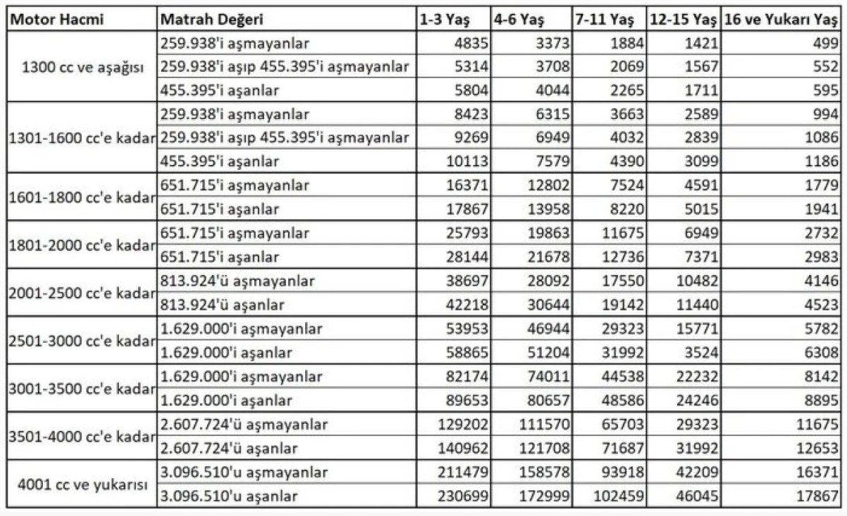 Böylece 2025 yılında uygulanacak Motorlu Taşıtlar Vergisi (MTV) de belli oldu.