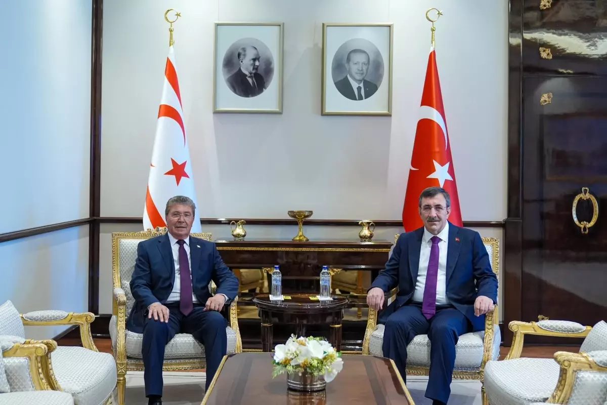 CUMHURBAŞKANI Yardımcısı Cevdet Yılmaz, Kuzey Kıbrıs Türk Cumhuriyeti (KKTC) Başbakanı Ünal Üstel ile bir araya geldi.