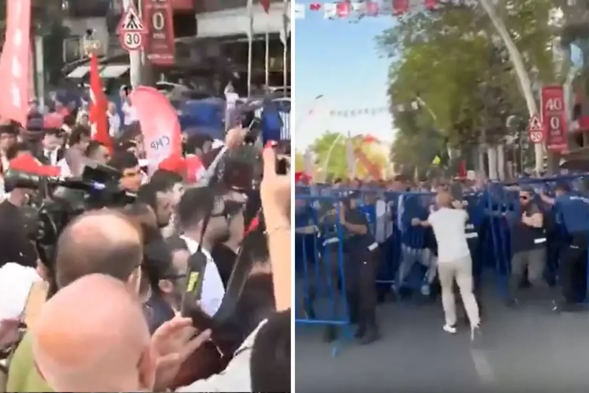 Polisin biber gazı ile müdahale ettiği kısa süreli arbede sırasında 6 kişinin gözaltına alındığı öğrenildi. Bazı kişilerin arama noktasındaki polis barikatlarını aşarak alana doğru yürüdüğü görüldü.