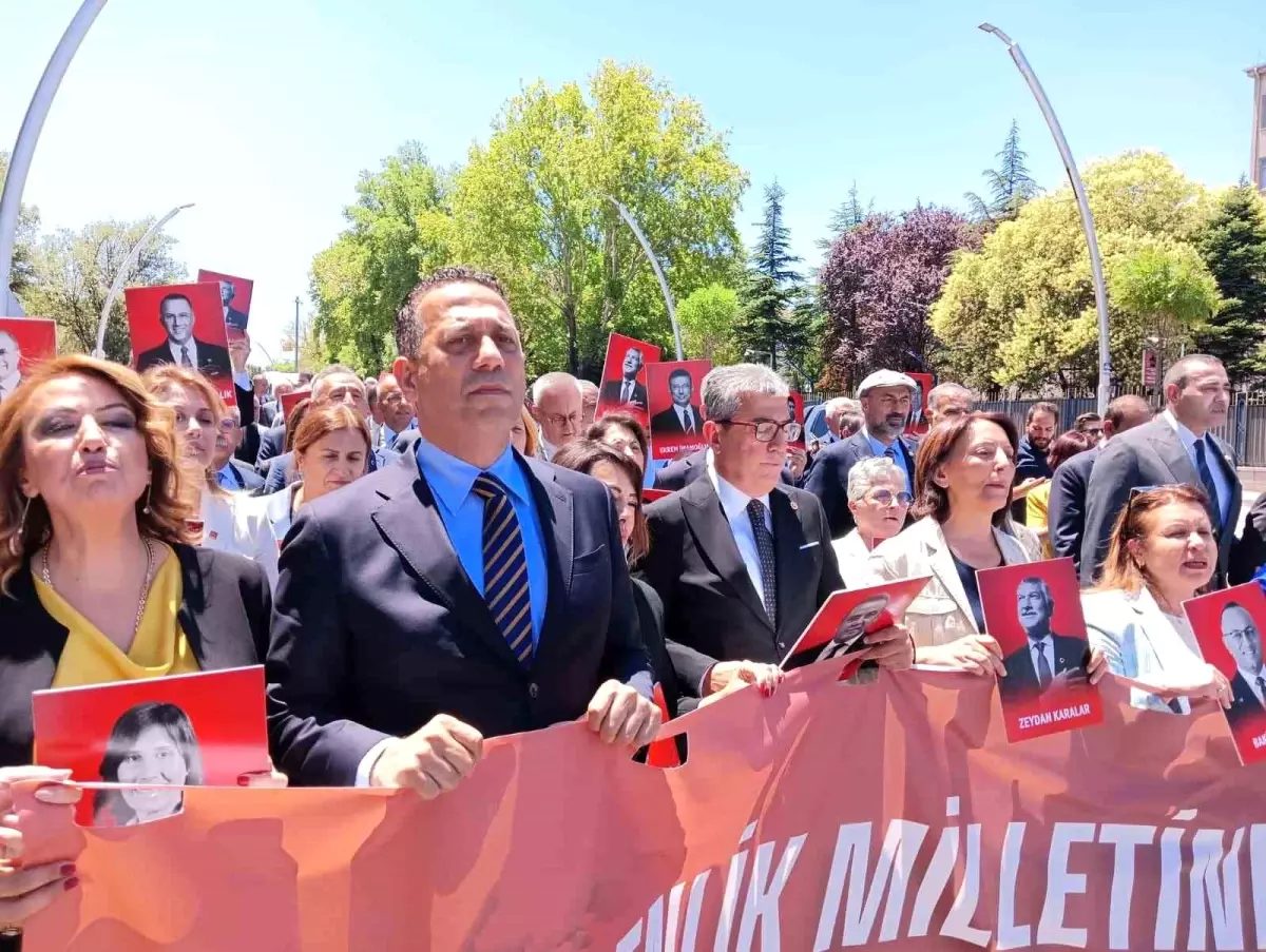 Cumhuriyet Halk Partisi (CHP) Grup Başkanvekilleri Gökhan Günaydın, Ali Mahir Başarır ve CHP milletvekilleri, belediyelere yönelik operasyonlara tepki göstererek Türkiye Büyük Millet Meclisi’nden (TBMM) Adalet Bakanlığına slogan atarak yürüdü.