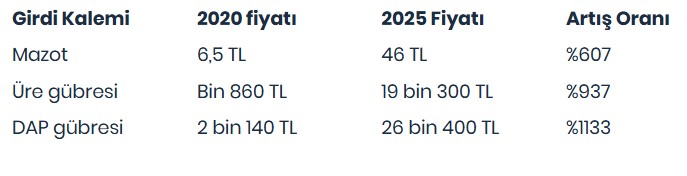 “Bu tablo, çiftçinin her yıl daha yüksek maliyetle, aynı ürünü üretmeye çalıştığını gösteriyor. Fiyatlar artıyor deniliyor ama artan yalnızca üreticinin maliyeti. Çiftçinin eline geçen net kazanç giderek azalıyor.”