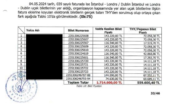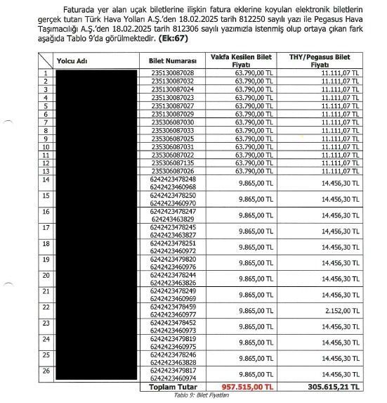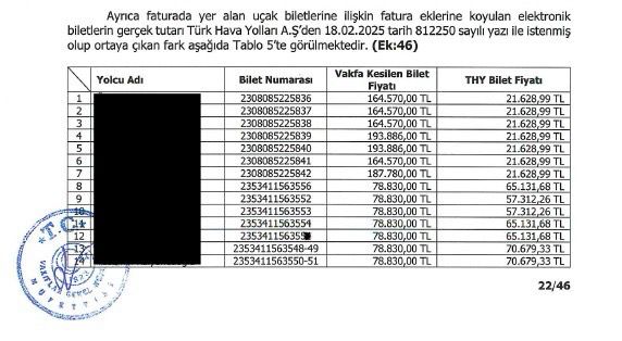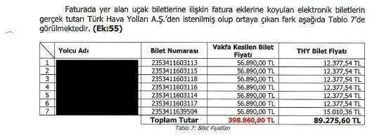 Not: 21.628 TL’lik bilet %800 oranında şişirilerek Vakıf tarafından 193.886 TL’ye satın alınıyor!