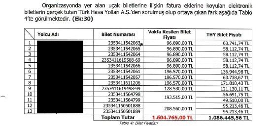 Vakfın, organizasyon şirketine ödediği şişirilmiş bilet fiyatı toplamı: 13.819.000 TL