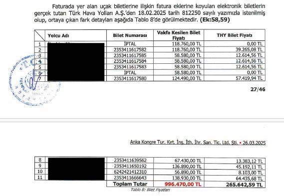 Vakfın %800’e varan oranlarda fazla ödeme yaptığı bu biletlerin resmî belgelerine ulaştık.