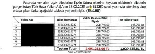 Vakfa kesilen bilet fiyatı: 2.091.215 TL