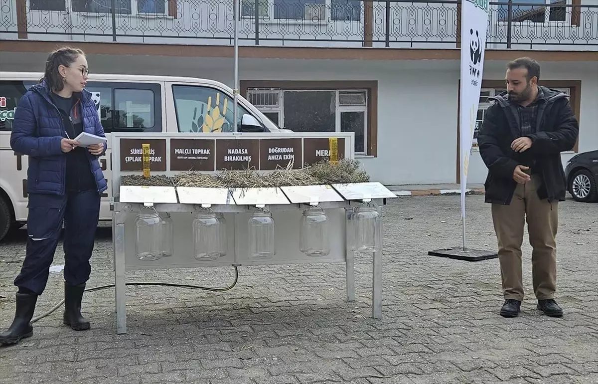 “Çiftçiler herhangi bir verim kaybı yaşamadan direkt anıza ekim yapıyor. Böylelikle yakıttan tasarruf sağlıyorlar. Türkiye Doğal Hayatı Koruma Vakfı’ndan Dilay Şentürk ve Egemen Çetin bize destek olmak amacıyla, çiftçilere anıza ekimi yerinde uygulamalı anlatıp, anıza ekimin faydası konusunda sunum yaptı. Anıza ekimin yaygınlaştırılması amacıyla makette yağmurlama yaparak, öncesi ve sonrasını karşılaştırdılar.”
