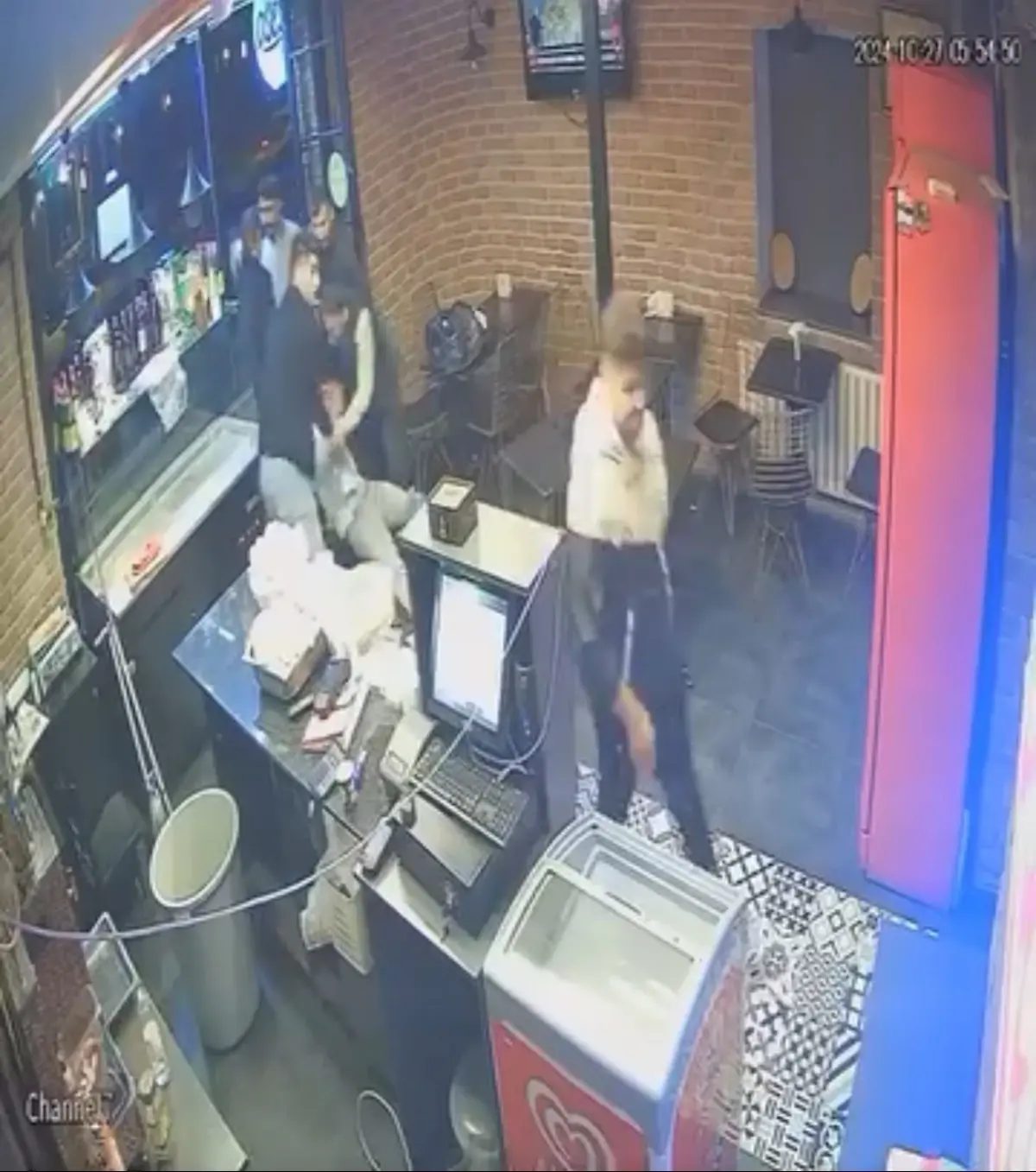 İş yeri çalışanı ve Orhan Y.’nin karşılık vermesiyle darbedilen kişi dışarıya çıkartıldı. Ancak yarım saat sonra iş yerinin önüne gelen şüpheli, elindeki şişeyi cama fırlattı. Camda hasar meydana gelirken, şüpheli yaya olarak olay yerinde uzaklaştı. Yaşananlar ise güvenlik kamerasına yansıdı.