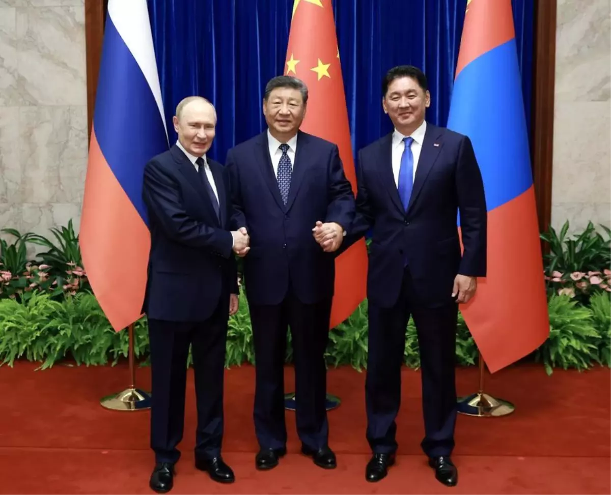 BEİJİNG, 2 Eylül (Xinhua) — Çin Cumhurbaşkanı Xi Jinping, Rusya Devlet Başkanı Vladimir Putin ve Moğolistan Cumhurbaşkanı Ukhnaa Khurelsukh ile salı günü sabah saatlerinde Çin’in başkenti Beijing’deki Büyük Halk Salonu’nda düzenlenen Üçlü Toplantı’da bir araya geldi.