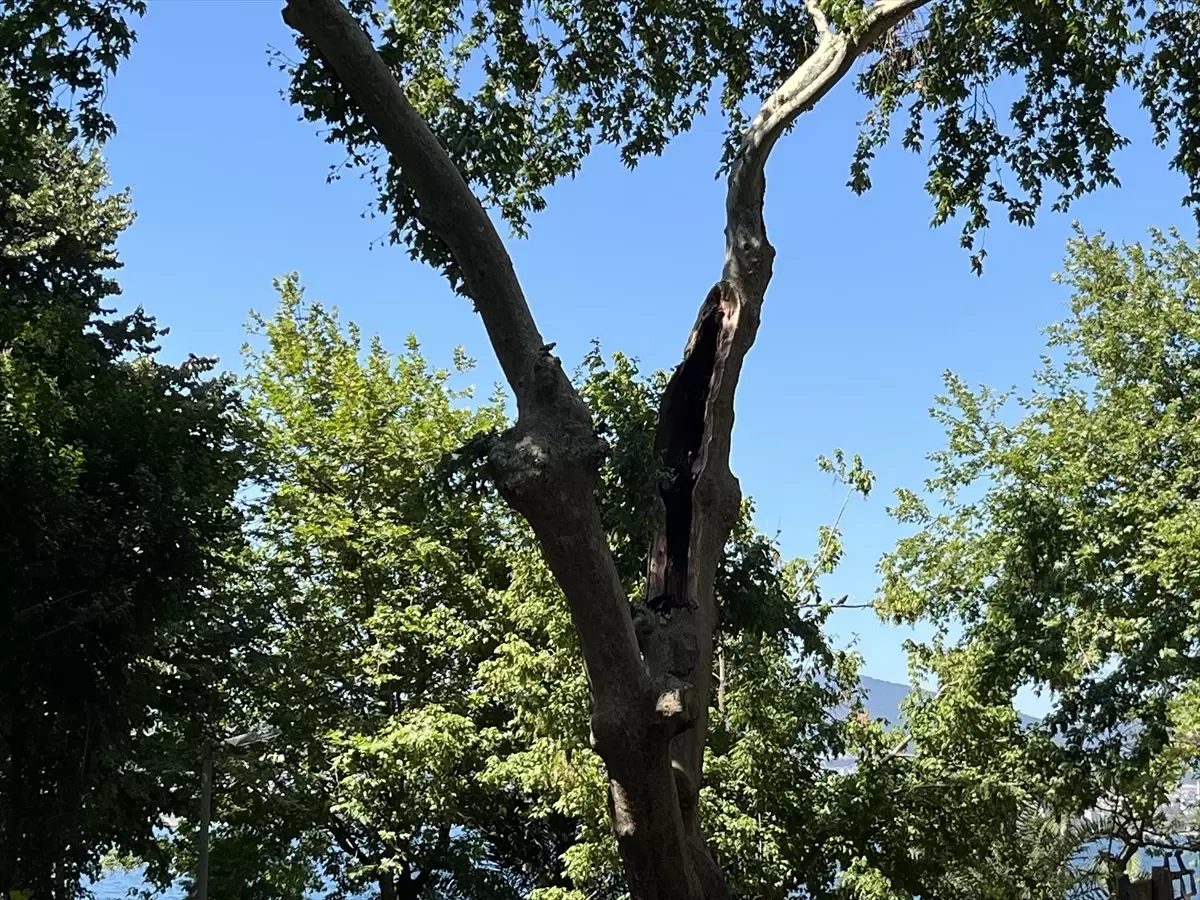 Görüntülerde, ağacın dalının şiddetli şekilde devrilmesi ve sonrasında çevredeki vatandaşların yaşadığı panik anları yer alıyor.