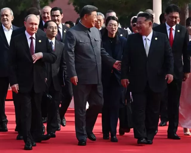 Üçlünün birlikte ilk kez görüntülenmesi, ABD’ye mesaj olarak yorumlandı. Üç lider, 2’inci Dünya Savaşı’nda Çinli gazilerle el sıkıştıktan sonra Tiananmen’e geçti.