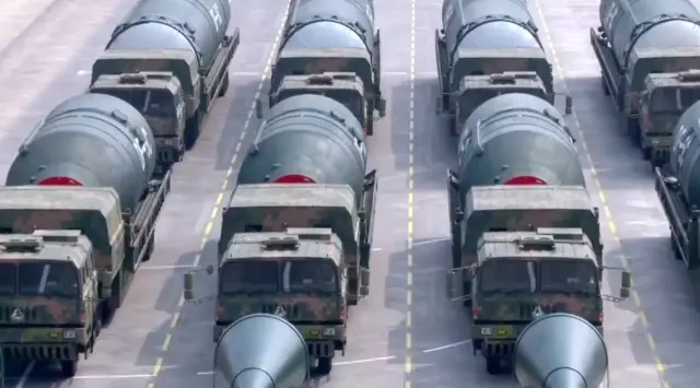 Öte yandan DF-61 kıtalararası balistik füzesinin ilk kez görücüye çıktığı askeri geçit töreninde 4. nesil hibrit motorlu tank ve piyade savaş araçları, tüm gezegeni’ kapsayacak menzile sahip DF-5 stratejik kıtalararası nükleer füzesi tanıtıldı.