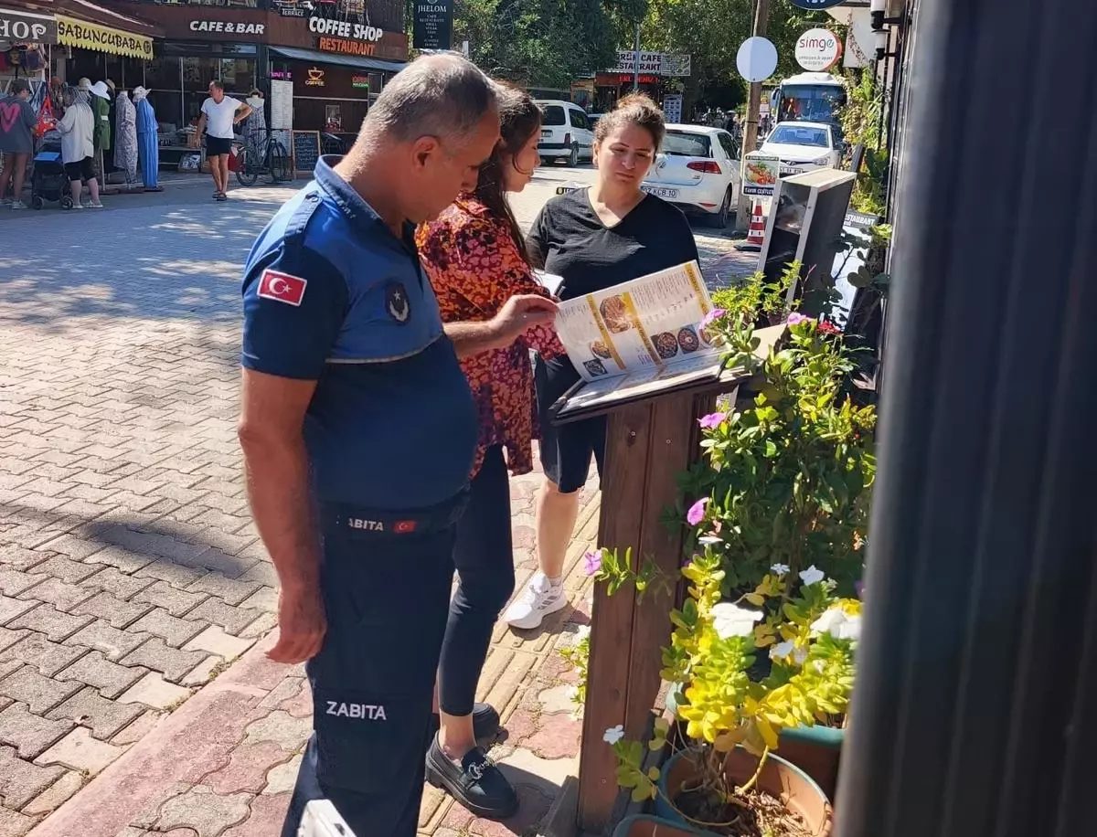 Denetimlerde iş yeri açma, çalışma ruhsatları, menüler ve fiyat tarifeleri ile hijyen koşullarını incelendi.
