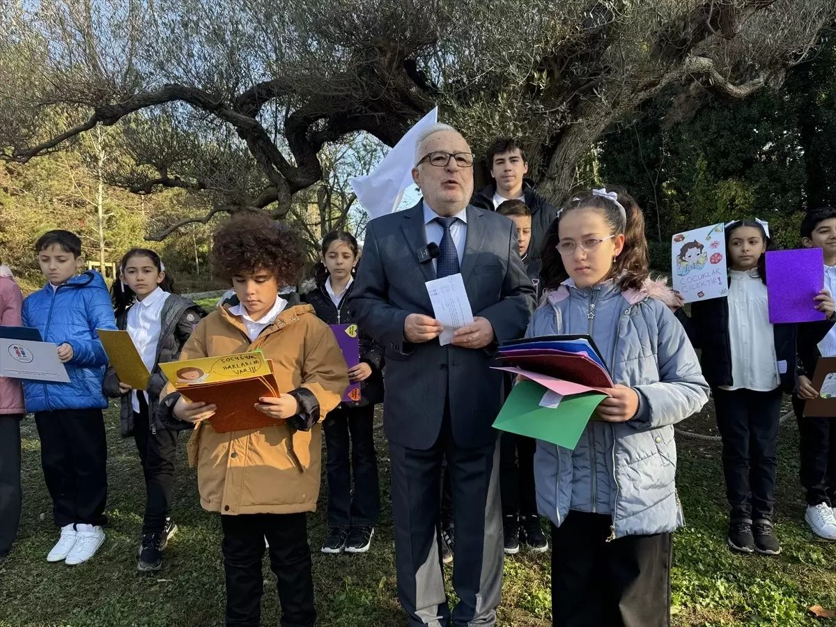 Çocuk Vakfı ile Sarıyer İlçe Milli Eğitim Müdürlüğünün “1. Çocuk Hakları Şiir Buluşması”na katılan öğrenciler 1000 yıllık zeytin ağacın önünde çocuk hakları temalı şiirleri okudu.