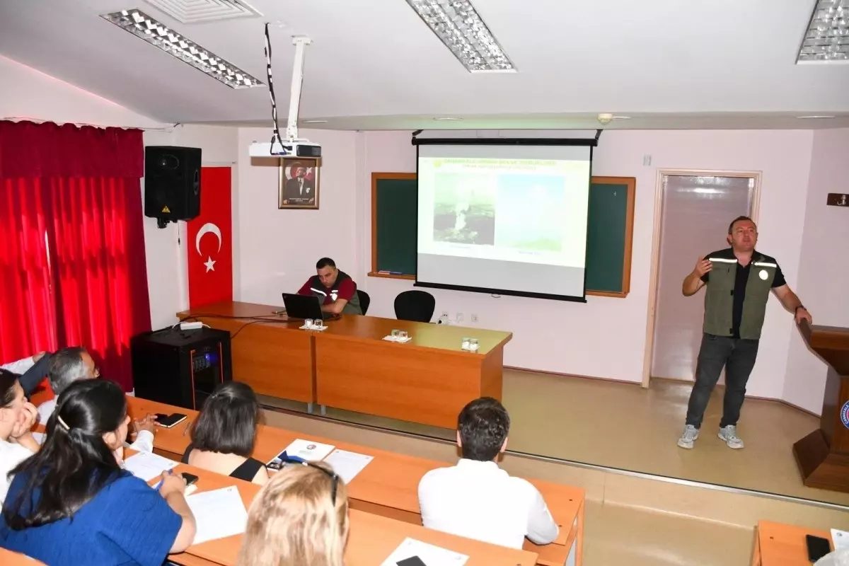 Orman Yangınları ile Mücadele Şube Müdürü Ferhat Özbek tarafından verilen eğitimde, Çanakkale’de meydana gelen orman yangınları, müdahale süreçleri ve önleyici tedbirler hakkında kapsamlı bilgiler anlatıldı.
