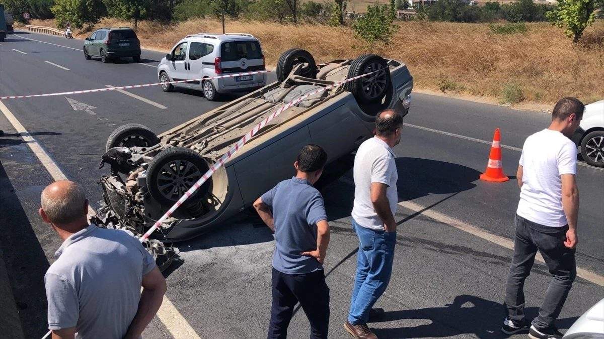 Tekirdağ’ın Çorlu ilçesinde devrilen otomobilin sürücüsü yaralandı.