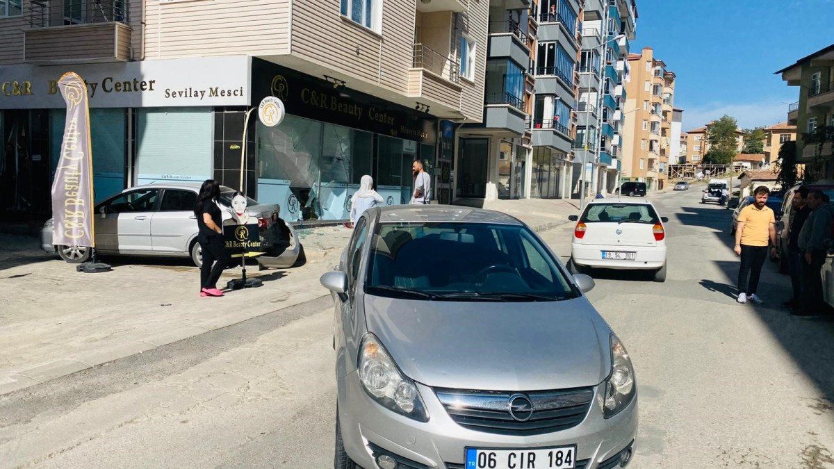 Çarpmaya rağmen durmayan otomobil, sonra hızını kesmeyerek güzellik merkezine daldı.