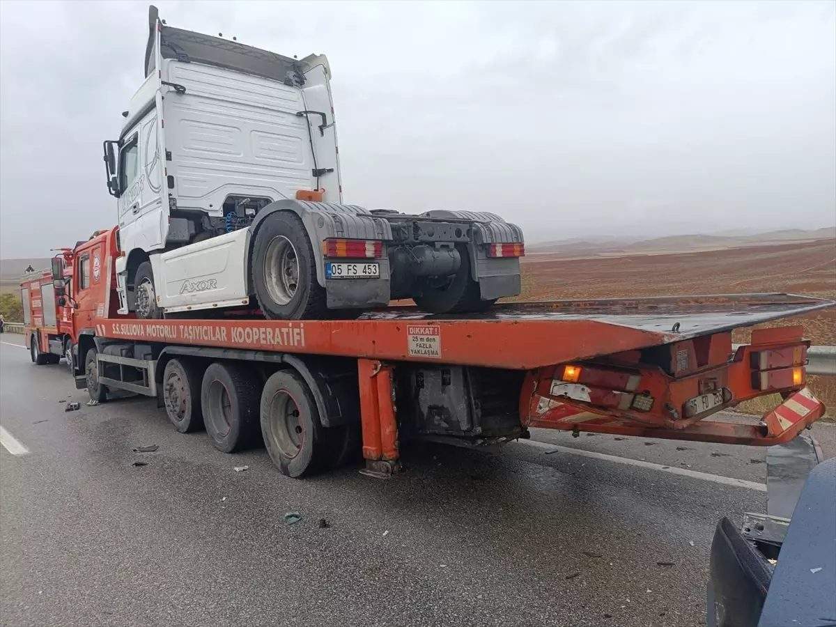 Sungurlu'da çekiciye çarpan otomobildeki 4 kişi yaralandı, hastaneye kaldırıldı.