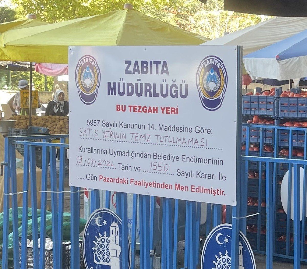 Semt pazarlarında fiyat kontrolünün yanı sıra tezgahlardaki ürün ve hijyen konularında da denetimler yapan Zabıta Müdürlüğü ekipleri hijyen kurallarına uymadığı için daha önce 2 kez cezai işlem uyguladıkları pazar esnafına 1 hafta tezgah kapatma cezası verdi.