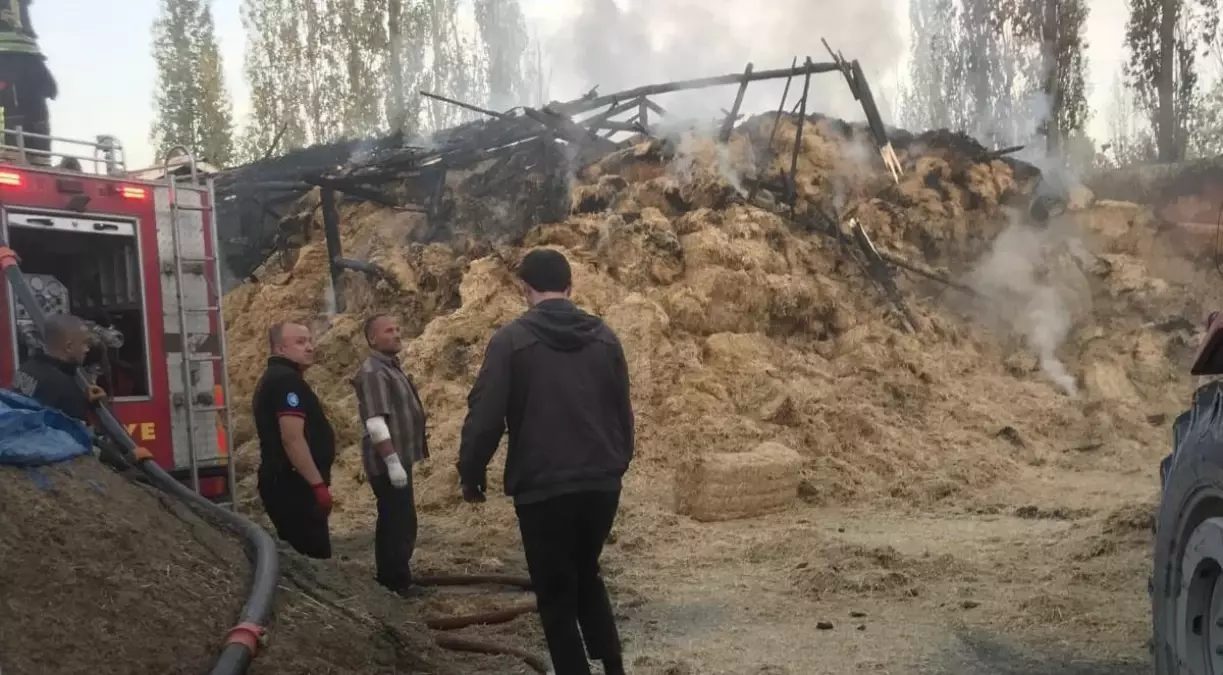 Meydana gelen olayda yaklaşık 5 bin balya saman yandı.