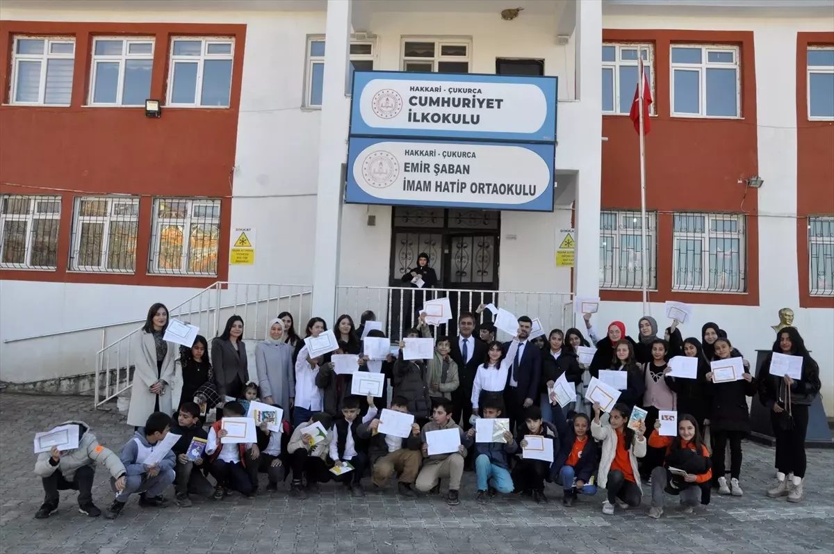 Hakkari’nin Çukurca ilçesinde, öğrenciler karnelerini alarak yarıyıl tatiline girdi.