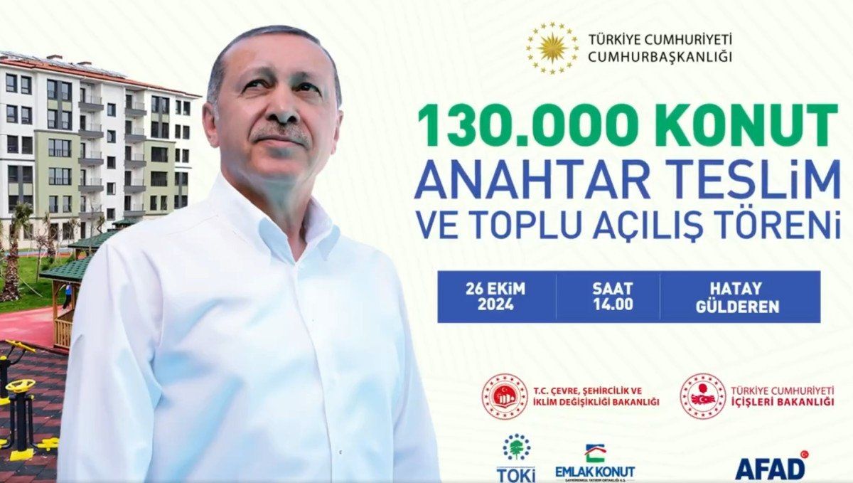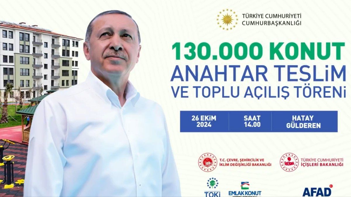 Yarın Hatay’da Cumhurbaşkanı Recep Tayyip Erdoğan’ın katılımıyla gerçekleştirilecek törenle, 130 bininci konutun anahtar teslimi yapılacak.
