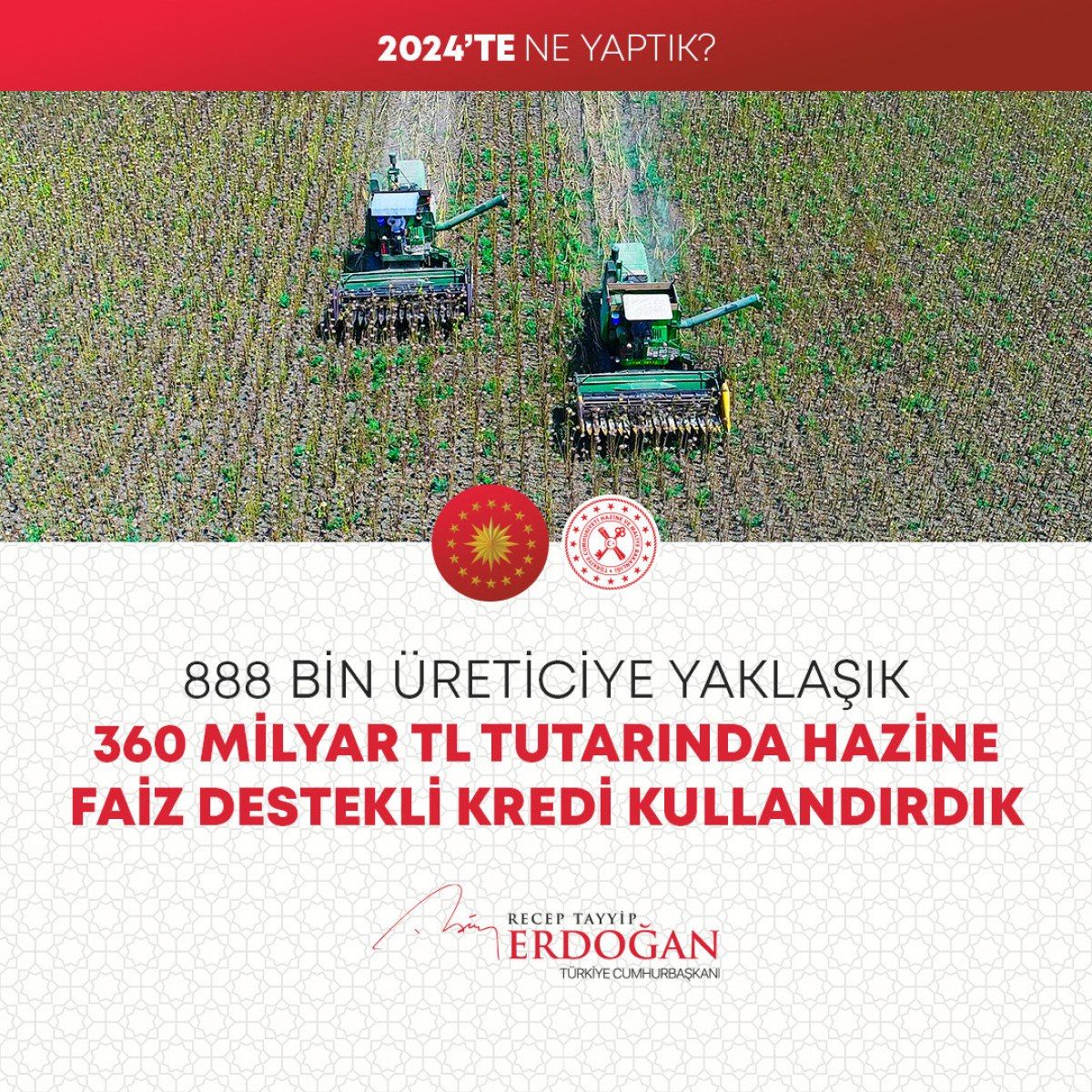 – 888 bin üreticiye yaklaşık 360 milyar TL tutarında hazine faiz destekli kredi kullandırdık. Böylece tarımsal üreticilere yönelik 76 milyar TL faiz desteği sağlamış olduk.