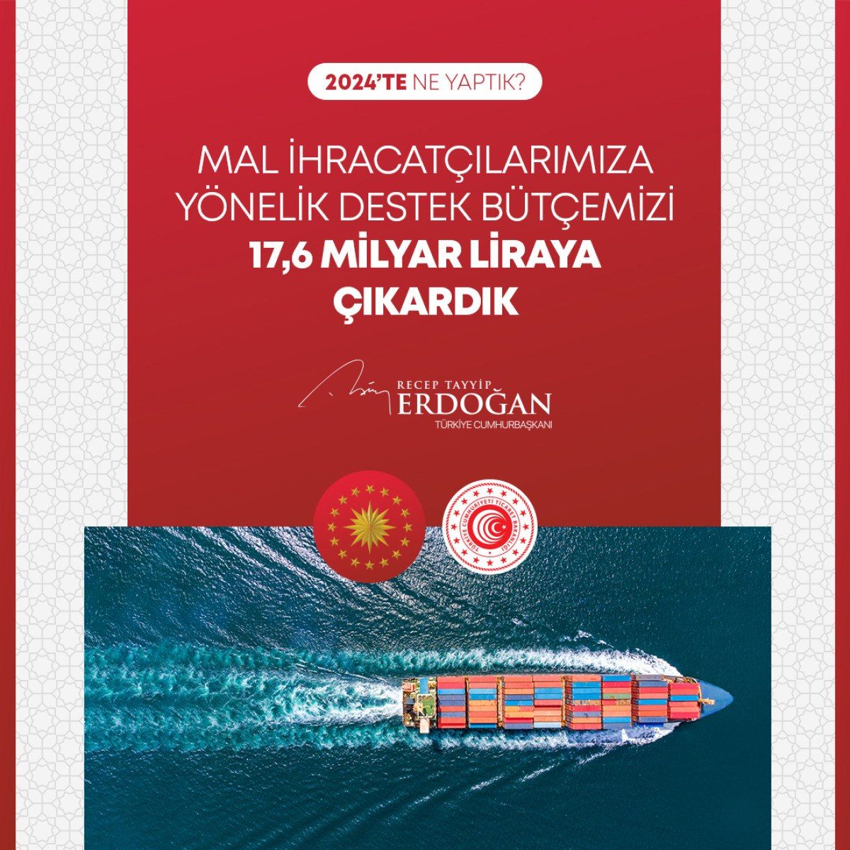 – Mal ihracatçılarımıza yönelik destek bütçemizi 17,6 milyar liraya çıkardık.