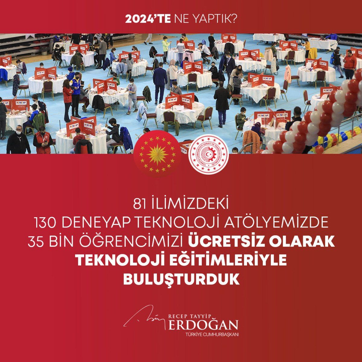 – 81 ilimizdeki 130 DENEYAP teknoloji atölyemizde 35 bin öğrencimizi ücretsiz olarak teknoloji eğitimleriyle buluşturduk.
