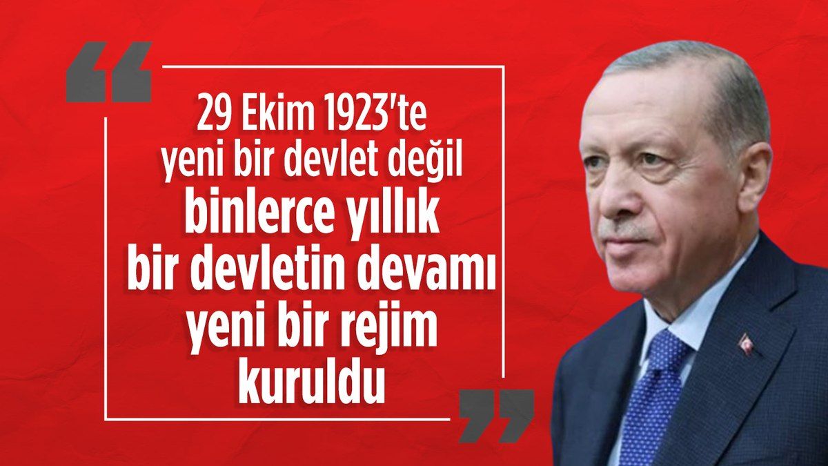 29 Ekim Özel Programı’nda açıklamalarda bulunan Cumhurbaşkanı Recep Tayyip Erdoğan, Cumhuriyet’in yeni bir devlet değil, Türk Milleti’nin binlerce yıllık devletler silsilesinin son silsilesi olduğuna vurgu yaptı.