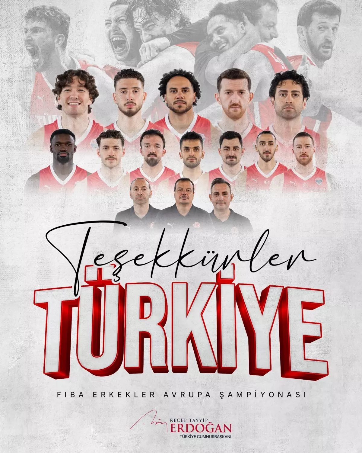 CUMHURBAŞKANI Erdoğan, EuroBasket 2025’te gümüş madalya kazanan A Milli Erkek Basketbol Takımı’nı sosyal medya hesabından yayınladığı mesajıyla tebrik etti.