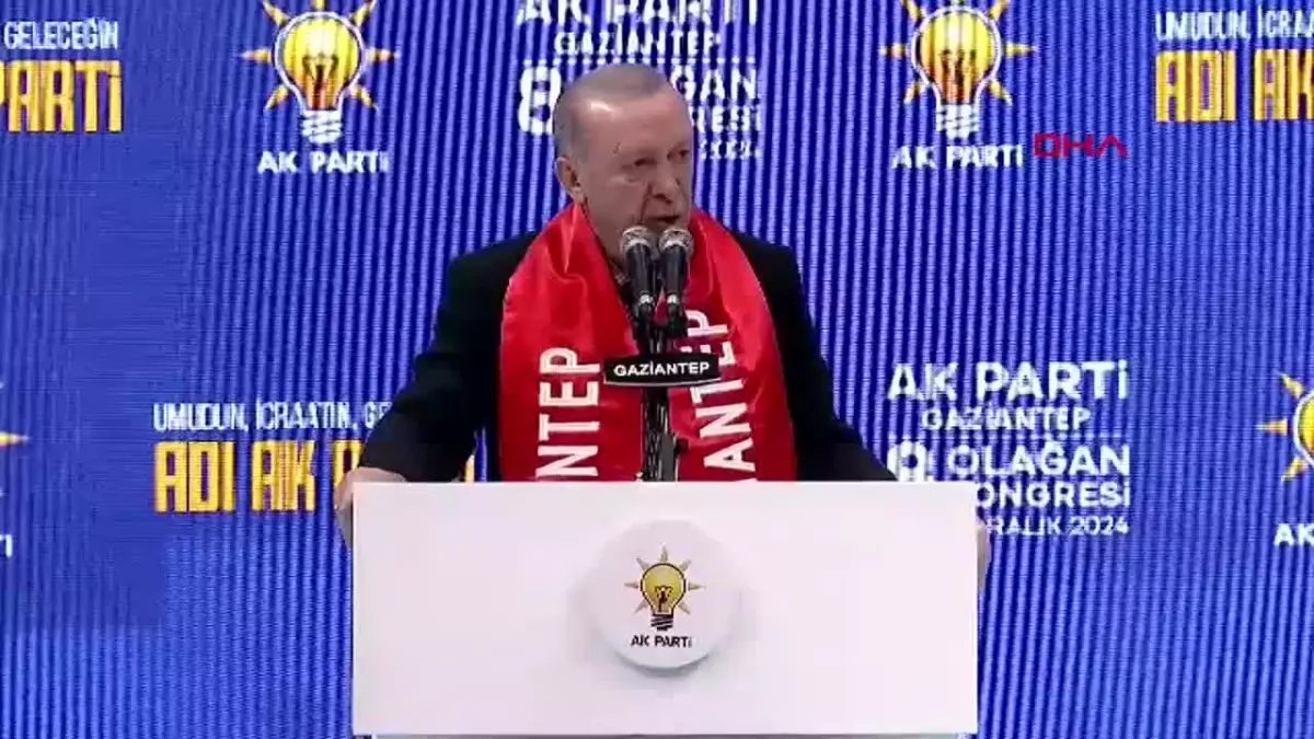 Kongre öncesi 5113 deprem ve sosyal konutun anahtar ve tapu teslim törenine katıldığını hatırlatan Erdoğan, “Geçen hafta Maraş’ta 155.000. Afet konutumuzun anahtarını teslim etmiştik. Bugün de Antepli kardeşlerimizin yeni evlerine kavuşmalarının sevincine ortak olduk. 6 Şubat depremlerinden sonra ‘Erdoğan bu enkazın altında kalır’ diyen kifayetsizleri hayal kırıklığına uğratmaya devam ediyoruz. Söz verdiğimiz gibi en son hak sahibi kardeşimiz de yuvasına kavuşana kadar inşallah durmadan dinlenmeden çalışacağız. Bu hususta yüksek hassasiyet gösteren kamu kurum ve kuruluşlarımıza belediyelerimize sivil toplum örgütlerimize Antep’in her duyarlı evladına şahsım ve milletim adına teşekkür ediyorum” diye konuştu.